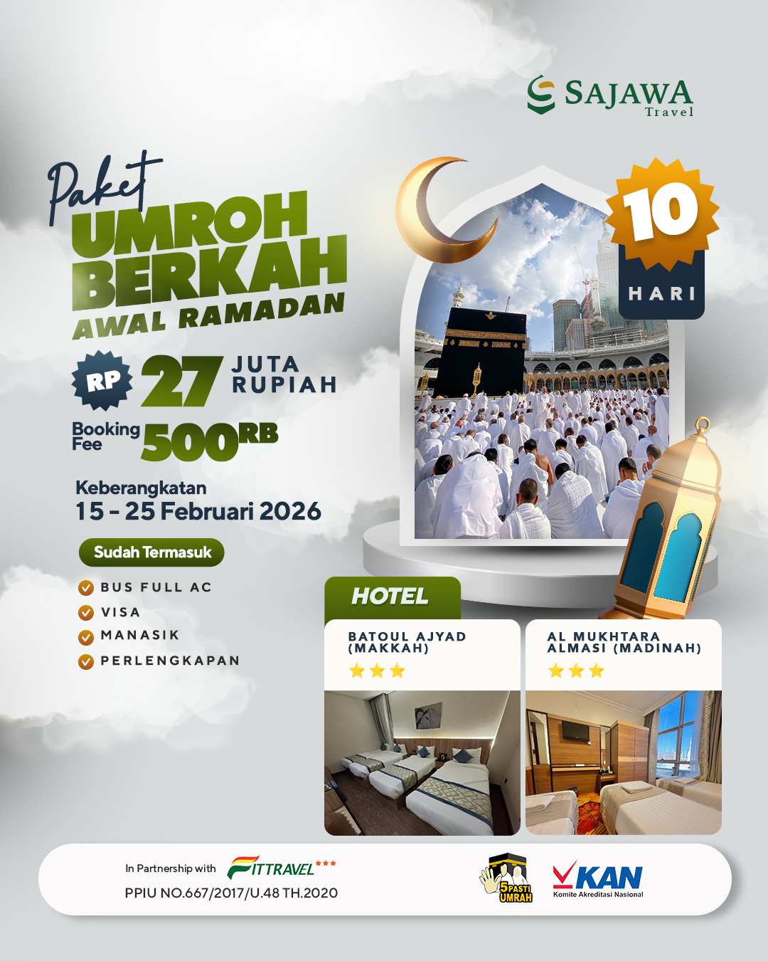 Kabar baik nih! Sajawa Travel punya Paket Umroh Berkah Ramadan dengan harga spesial Rp27 Juta aja.